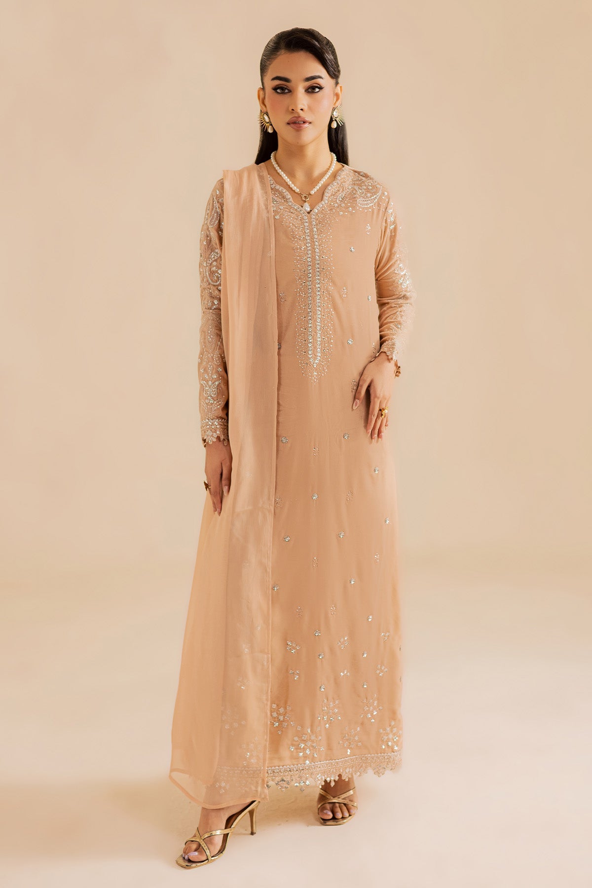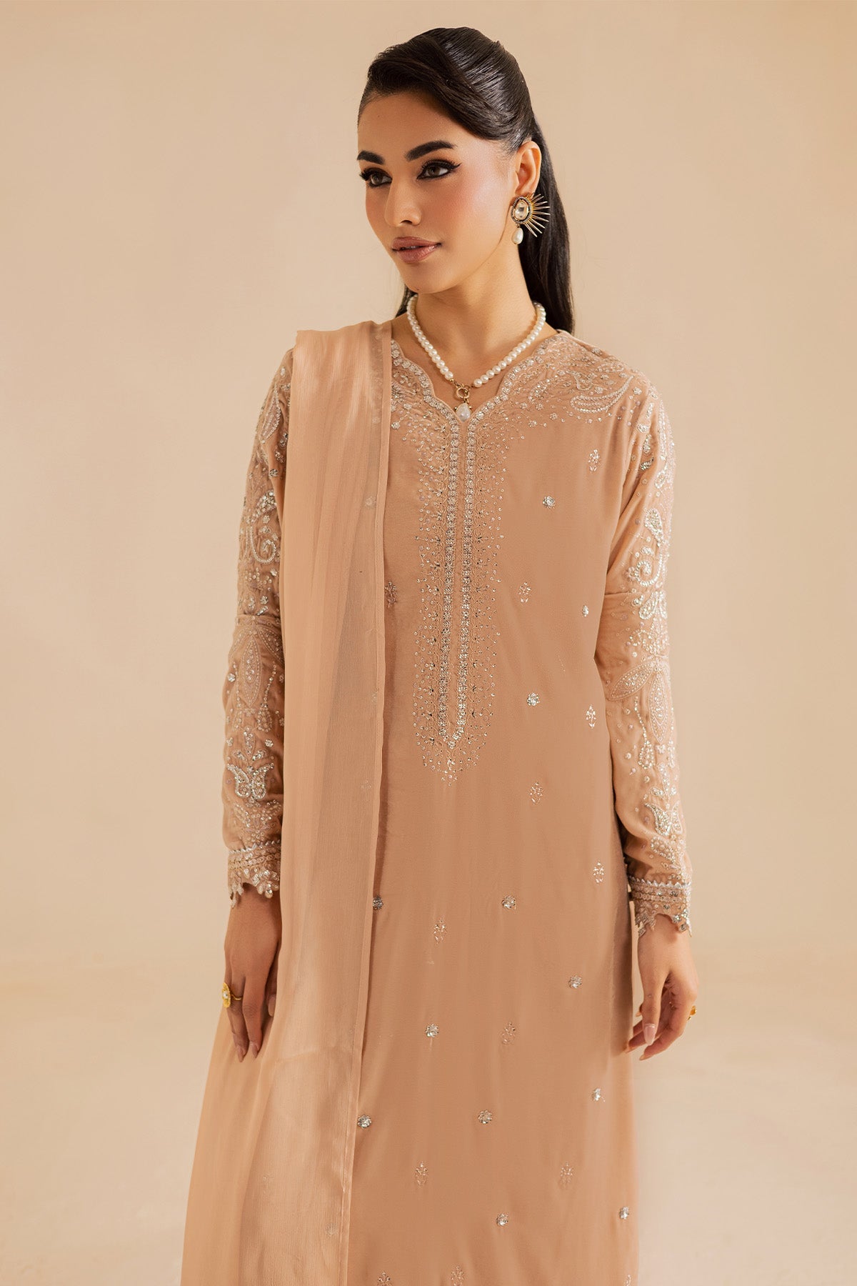 Nureh a renowned Pakistani fashion brand, has consistently captivated the hearts of fashion enthusiasts with its exquisite designs and impeccable craftsmanship. One such masterpiece that has garnered immense admiration is the NP-733 Velvet Stitched. This elegant ensemble, crafted from premium quality Velvet fabric is a testament to Nureh commitment to timeless style and comfort.