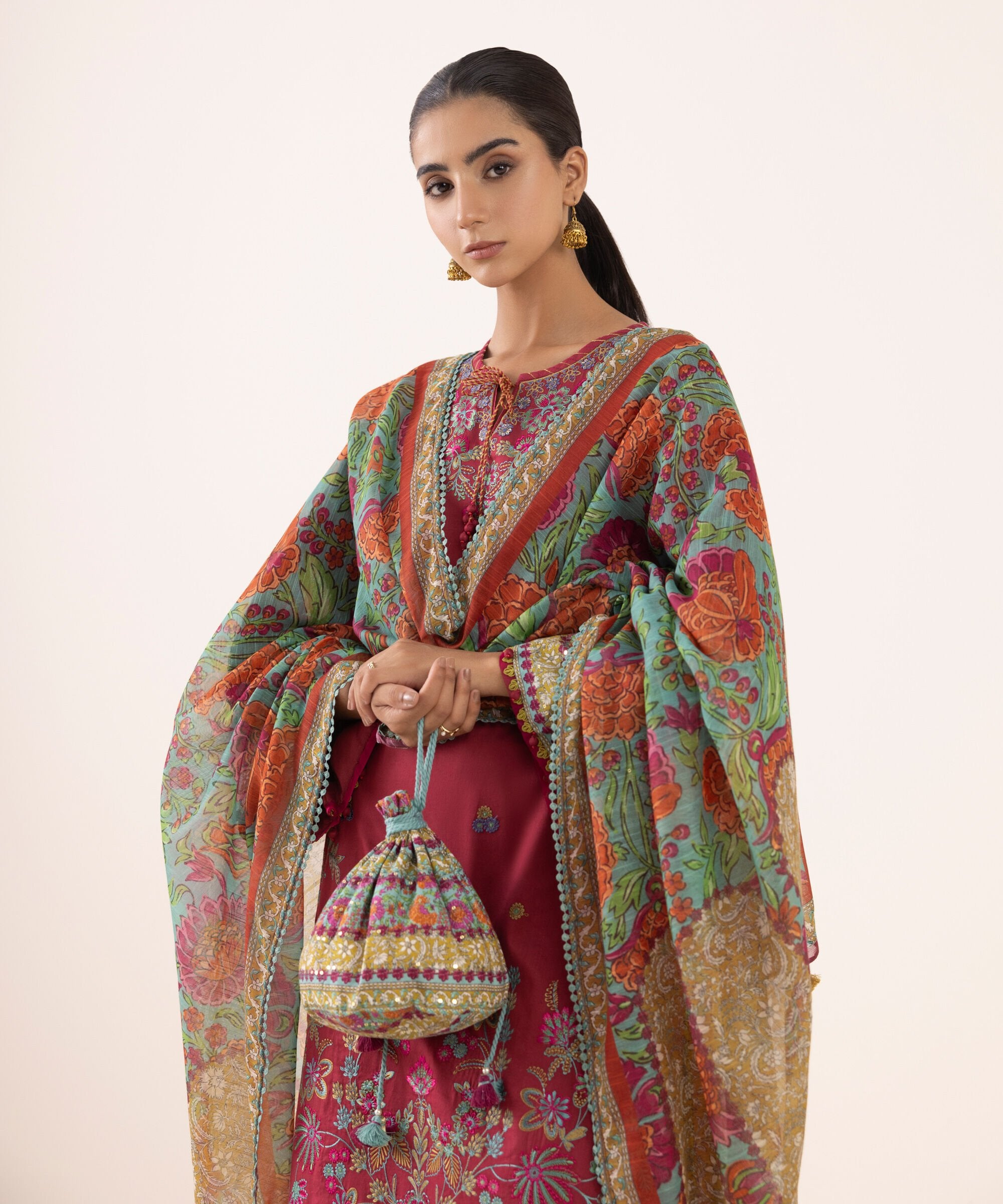 The 0PESG25V619B Cotton Satin Unstitched features a captivating blend of traditional and contemporary elements. The intricate embroidery, meticulously executed with delicate threads, adds a touch of sophistication to the design. The vibrant colors and patterns used in the embroidery create a visually stunning effect, making the ensemble perfect for special occasions. The silhouette of the 0PESG25V619B is both flattering and comfortable, ensuring that the wearer feels confident and graceful. The Cotton Satin fabric, known for its breathability and softness, provides a luxurious feel against the skin, making it ideal for the warmer months.