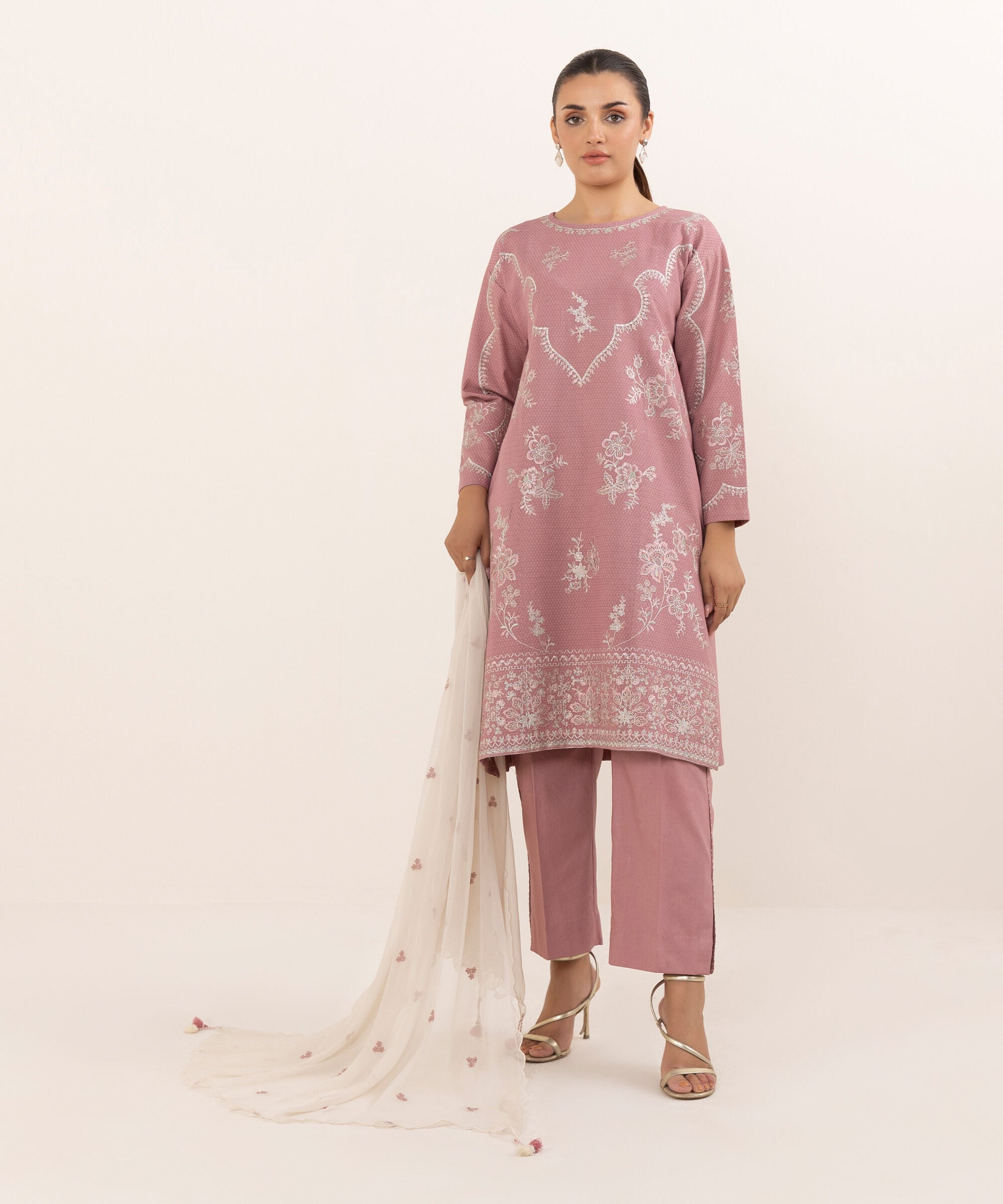 Sapphire a renowned Pakistani fashion brand, has consistently captivated the hearts of fashion enthusiasts with its exquisite designs and impeccable craftsmanship. One such masterpiece that has garnered immense admiration is the U3PEST25V611 Dobby Unstitched. This elegant ensemble, crafted from premium quality Dobby fabric is a testament to Sapphire commitment to timeless style and comfort.