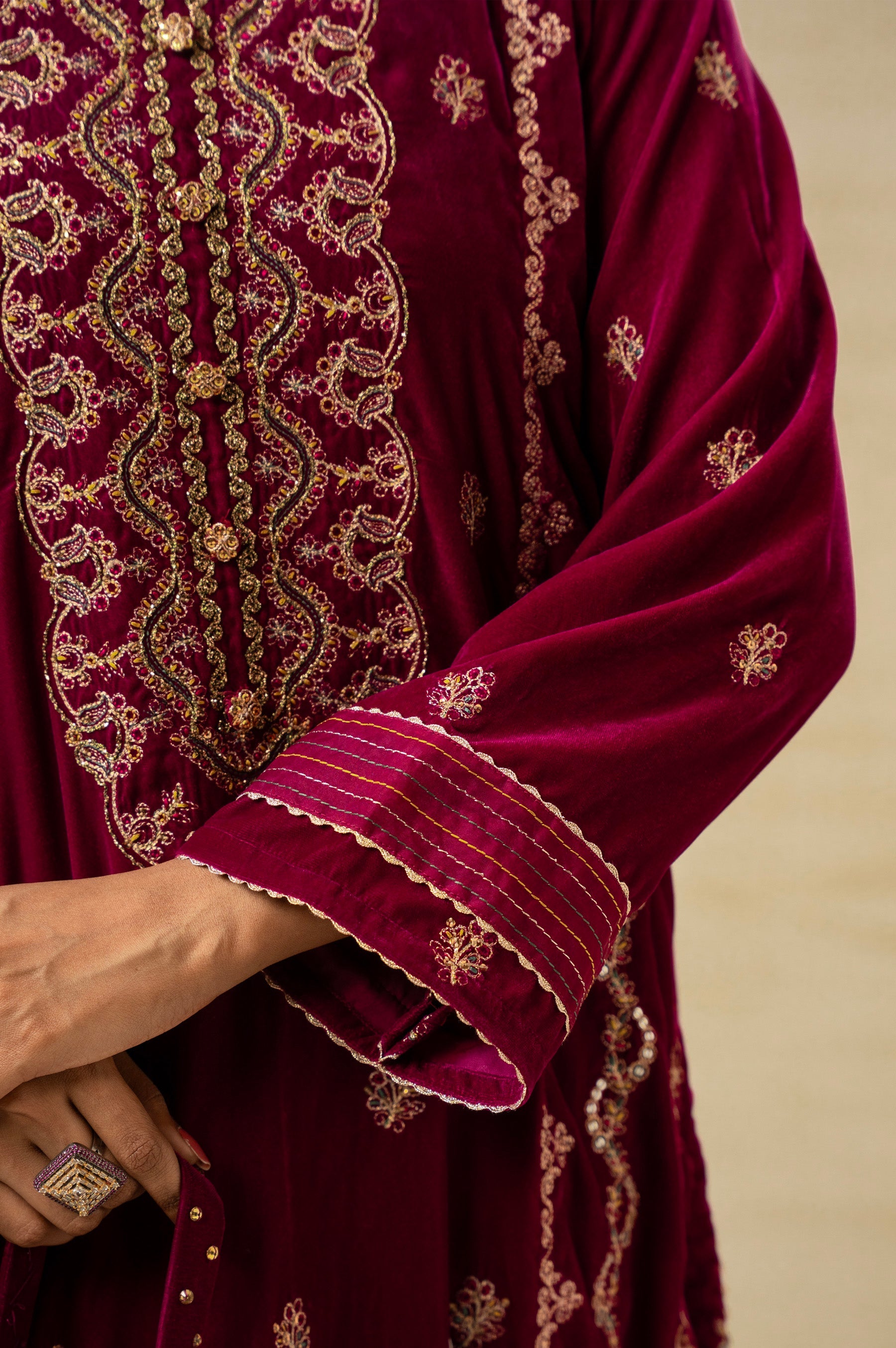 Zeen a renowned Pakistani fashion brand, has consistently captivated the hearts of fashion enthusiasts with its exquisite designs and impeccable craftsmanship. One such masterpiece that has garnered immense admiration is the Wum35846 Fuchsia Velvet Unstitched. This elegant ensemble, crafted from premium quality Velvet fabric is a testament to Zeen commitment to timeless style and comfort.