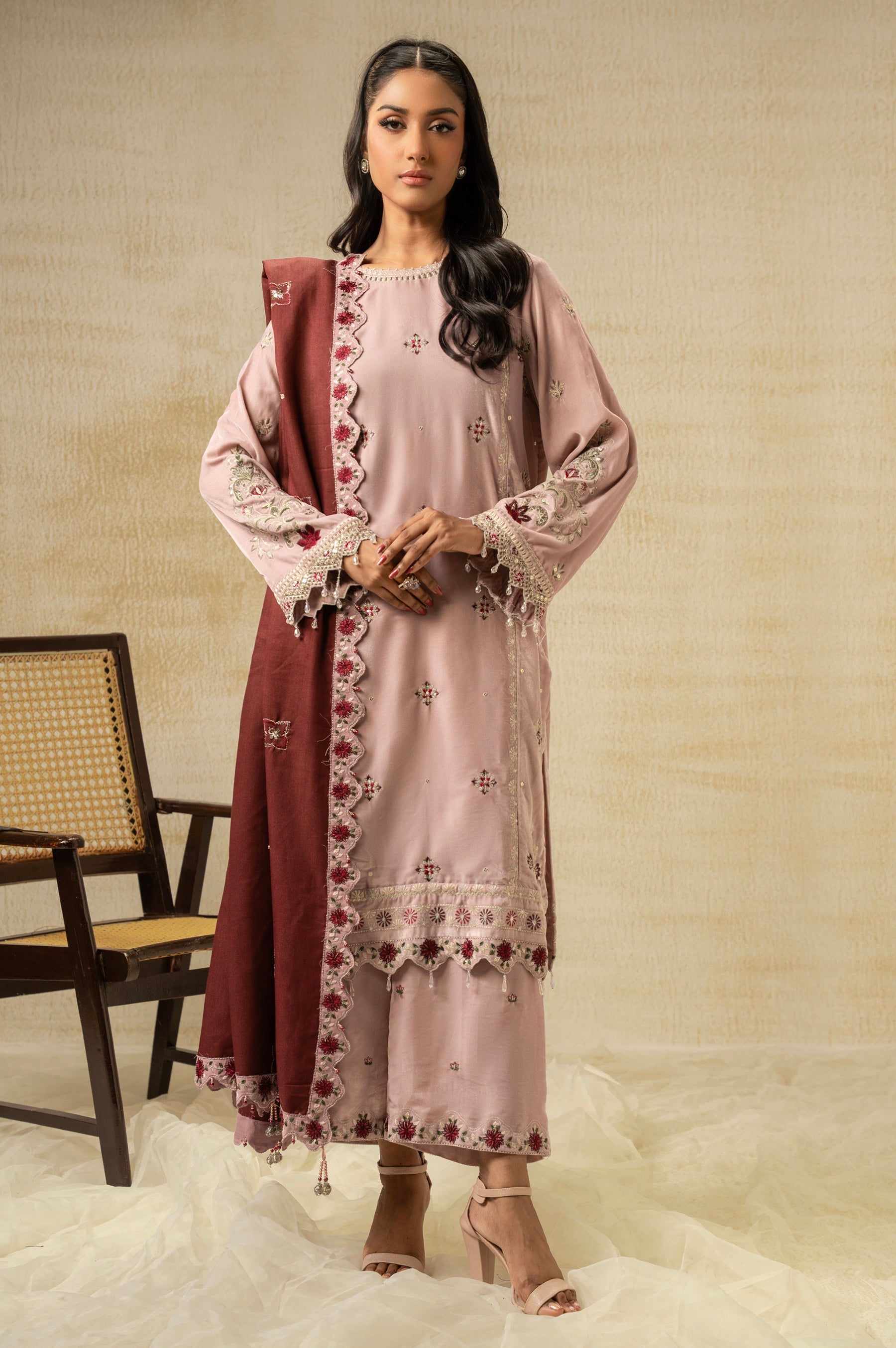 Zeen a renowned Pakistani fashion brand, has consistently captivated the hearts of fashion enthusiasts with its exquisite designs and impeccable craftsmanship. One such masterpiece that has garnered immense admiration is the Wum35862 Primrose Pink Velvet Unstitched. This elegant ensemble, crafted from premium quality Velvet fabric is a testament to Zeen commitment to timeless style and comfort.